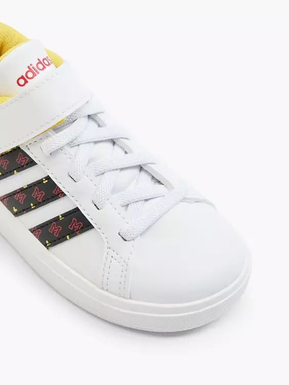 Dein kleiner Schatz liebt Disneys Micky Maus? Mit diesem adidas Sneaker für Kinder ist die beliebte Cartoon-Figur auf Schritt und Tritt immer dabei. Das Obermaterial aus Synthetikleder sorgt für ein bequemes Tragegefühl. Die Schnürsenkel und der Klettverschlussriemen garantieren außerdem einen sicheren Sitz, egal ob beim Kicken oder auf Bäume klettern. Die Gummiaußensohle bietet bei jeder Art von Action Grip und Stabilität.Mit einem Recycling-Anteil von mindestens 50 % im Obermaterial ist dieses Produkt nur eine unserer Lösungen im Kampf gegen Plastikmüll.